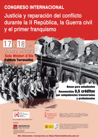 JUSTICIA Y REPARACIÓN DEL CONFLICTO DURANTE LA II REPÚBLICA, LA GUERRA CIVIL Y EL PRIMER FRANQUISMO, Elche, 17 y 18 de octubre de 2023.