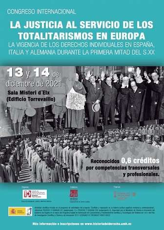 Congreso Internacional EL PODER JUDICIAL DURANTE LA REPÚBLICA, LA GUERRA CIVIL Y EL FRANQUISMO, REPRESIÓN Y ORDEN PÚBLICO, Elche 8 y 9 de noviembre de 2017.